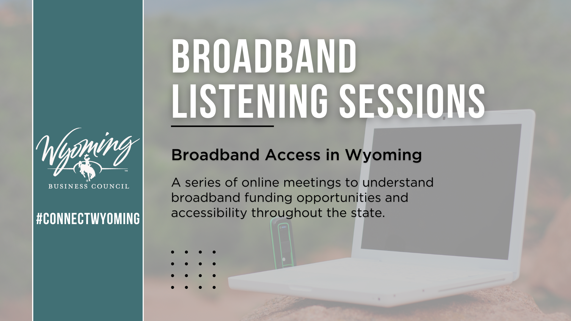 These virtual sessions are organized by and target different interest groups (i.e. state agencies, internet service providers, economic development, local government, etc.); however, you are welcome to attend any of these meetings that best fit your schedule. We also will be scheduling a series of in-person meetings throughout the state later this spring, so stay tuned for more opportunities to learn and share your thoughts about broadband access in Wyoming.